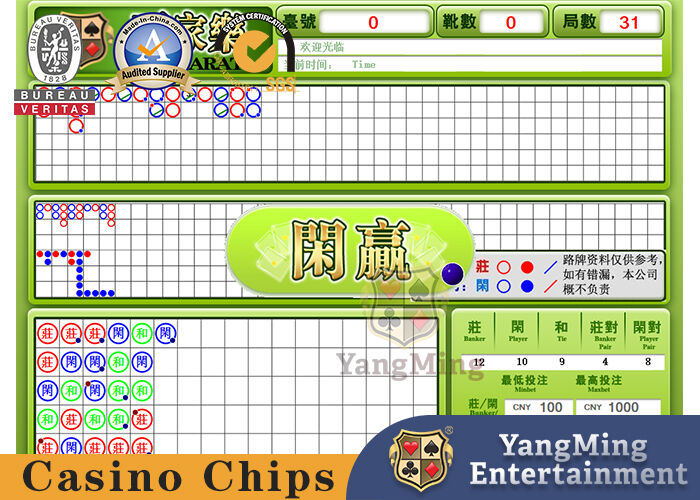 | Parámetro de la función | 1.Puede mostrar las carreteras principales, carreteras Zhuzi, carreteras pequeñas, ojos grandes, carreteras de cebolla verde comúnmente usadas en Macao (usando el método estándar de dibujo de reglas de Macao) 2.Con la función de visualización de las estadísticas bancarias, de desempleo, de empate y de pares 3.Todas las funciones anteriores se pueden modificar y actualizar automáticamente 4Proporcione especialmente la siguiente ronda de preguntas de direcciones 5Cuando cada camino está lleno, se puede mover hacia atrás automáticamente. 6Todos los pasos de operación tienen consejos detallados. |